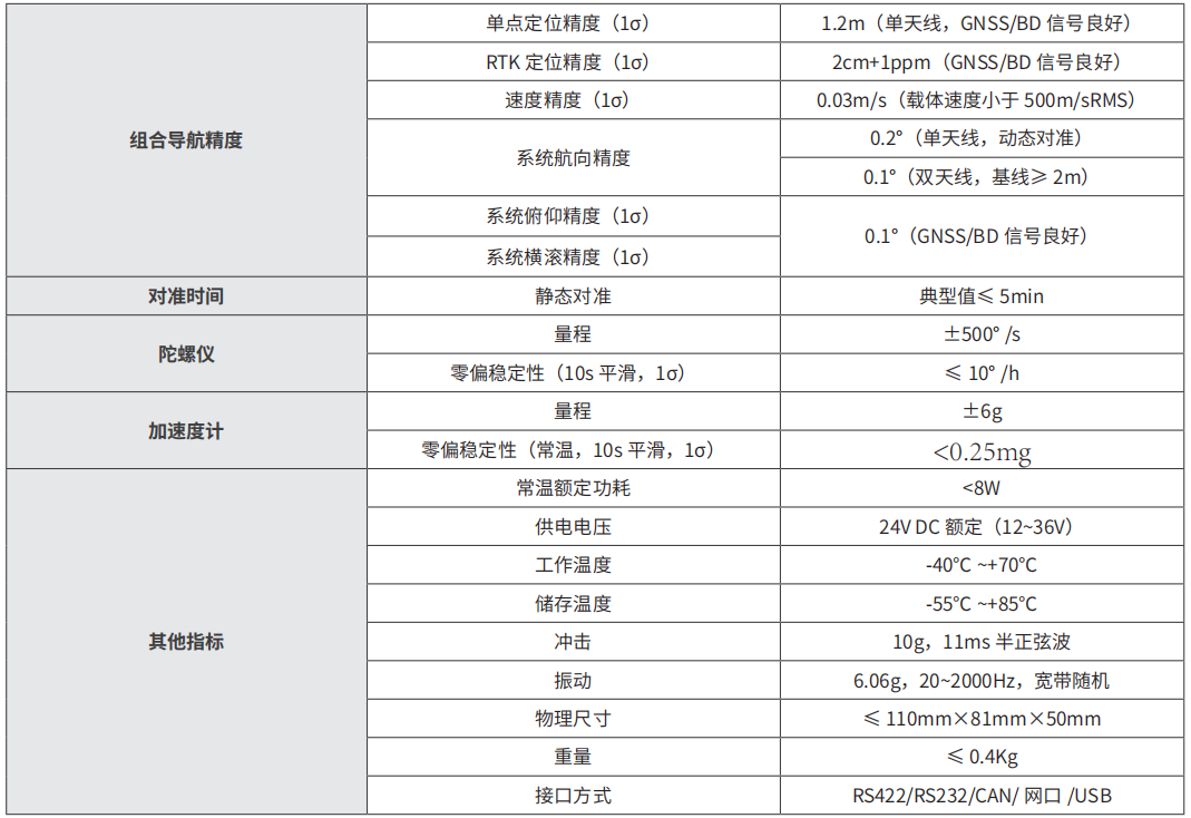航向精度:0.2°(單天線)、0.1°(雙天線)