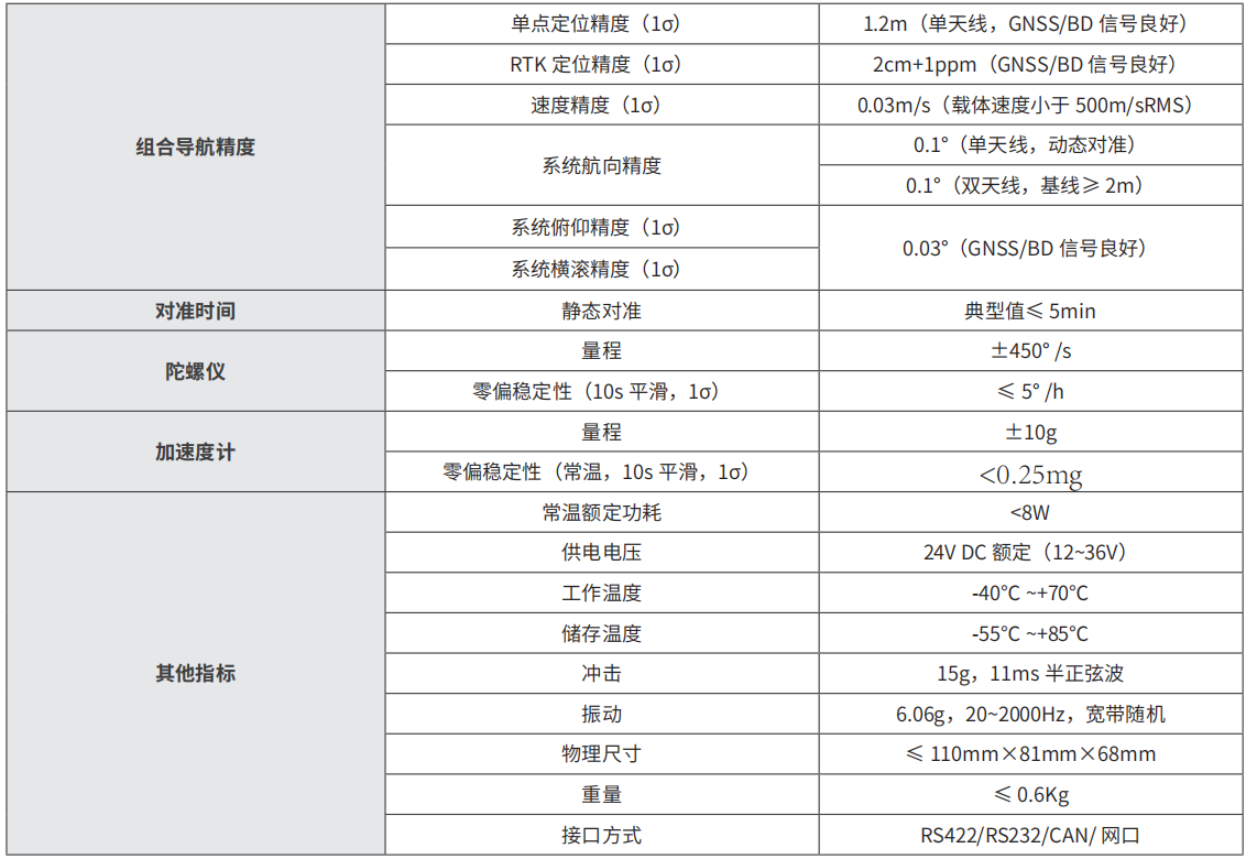 航向精度:0.1°(單天線)、0.1°(雙天線)